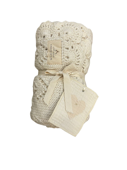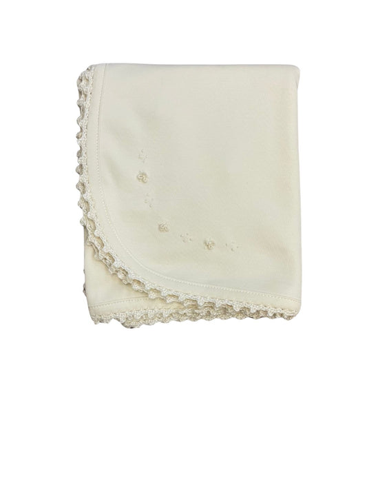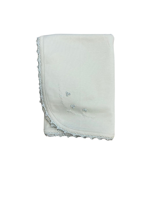 Pointelle blanket-Light blue flowers -