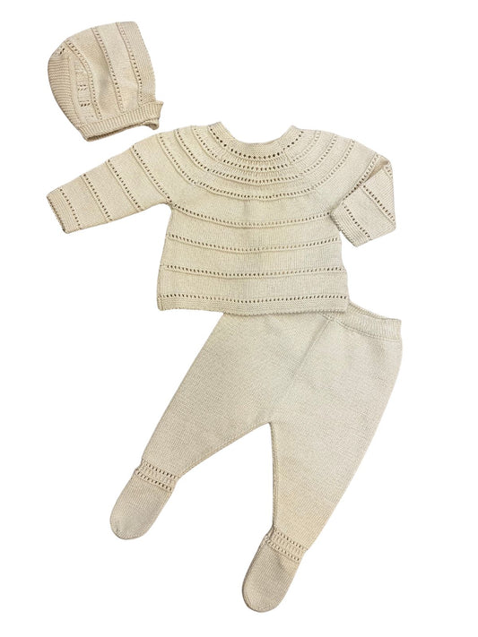 Pearl Crochet Trim Three Piece Set-Pearl -