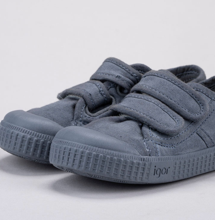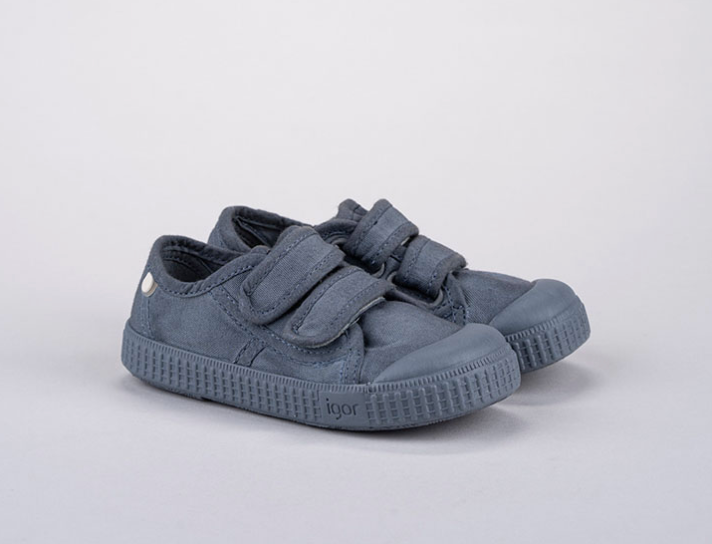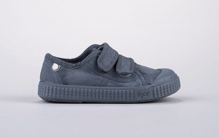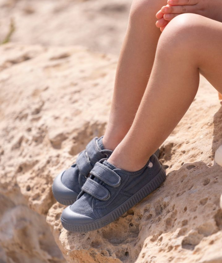 Zapatilla de lona monocolor 100% algodón, con doble cierre adherente y puntera reforzada para los pequeños más inquietos.Lavar en agua fría no sin antes extraer la plantilla.