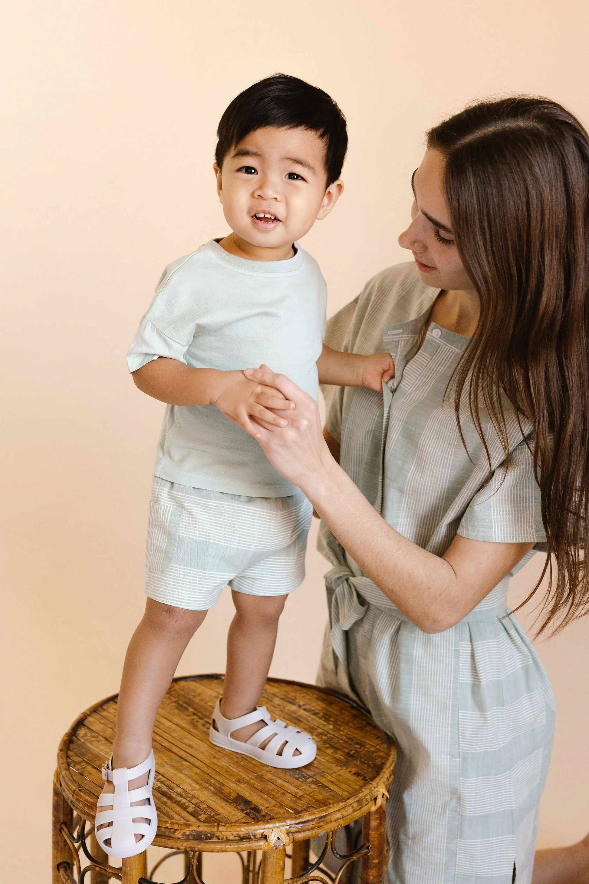 Water-resistant, flexible, and made for sunny day play. From poolside splashing to beachside exploring, the Fisherman Sandal is thoughtfully designed for warm-weather adventures. Crafted for toddlers and kids, it features a wide toe box, flexible outsole, and a removable cushioned insole for all-day comfort and support. The adjustable straps with antique brass buckle ensure a secure fit, while the wipe-clean, water-resistant material makes it as practical as it is timeless. Pehr it with our Spring/Summer collection for your next sun-filled outing.