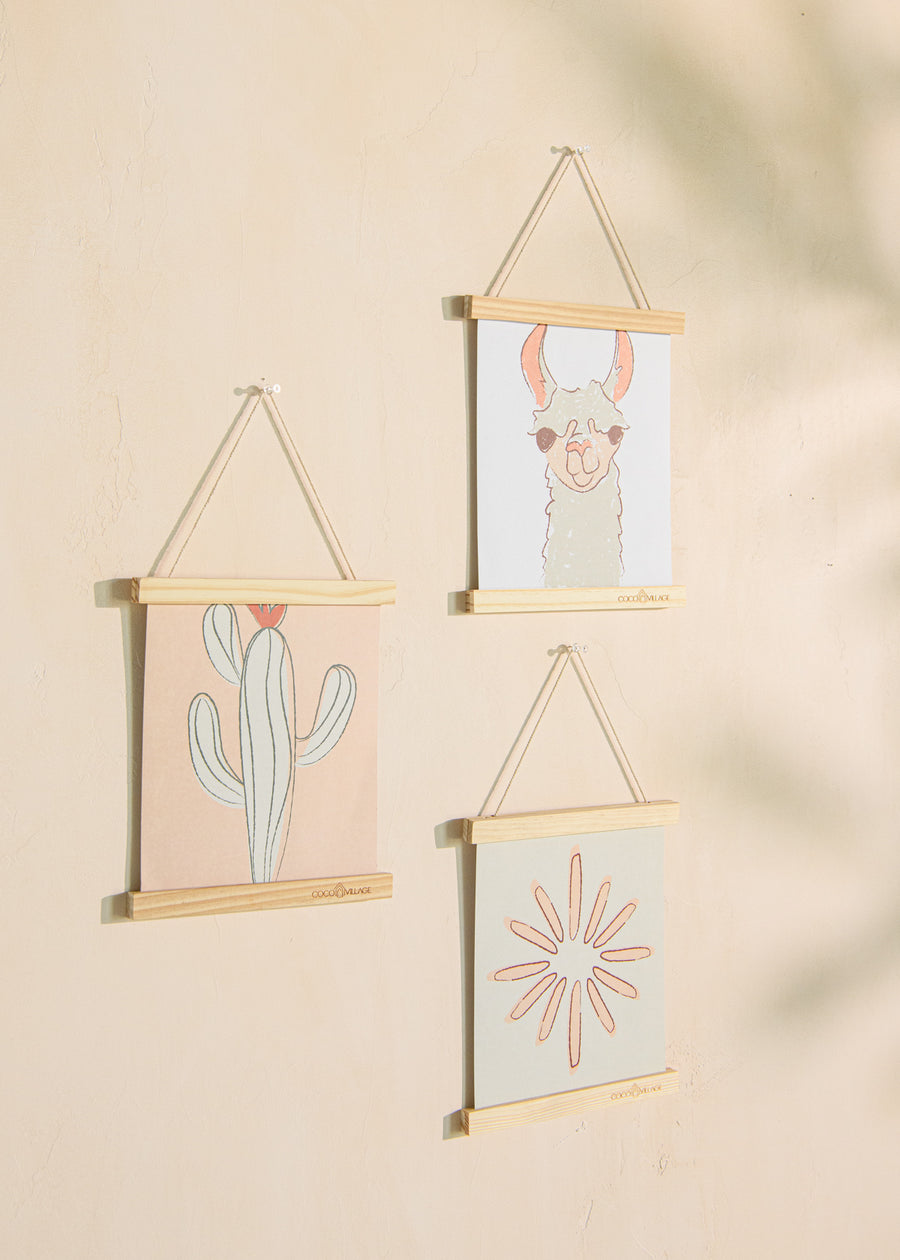Our beautiful set of 3 Hanging Canvas Print Trio With Wooden Frame is the perfect accessory to add the finishing touches to your little one’s nursery, playroom or bedroom space. (It’s a great gift too!) These joyful illustrations will brighten up your child’s room, add a pop of color and some fun to your walls!