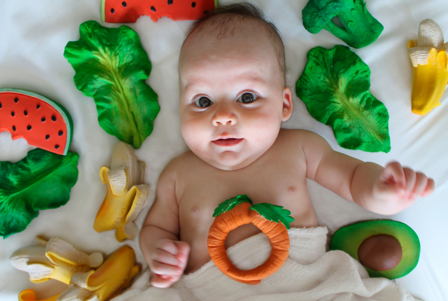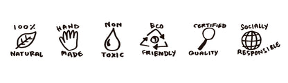 Cada juguete/mordedor de Oli&Carol es una pieza única. Hechos 100% de caucho natural, cada pieza es hecha y pintada a mano con pigmentos naturales extraídos de plantas, no tóxicos y biodegradables.