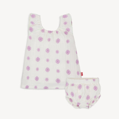 You'll love our little baby dress, especially when getting dressed has its challenges—thanks to magnetic closures, it's super easy to slip over the head. Cotton poplin is soft and crisp, perfect for special occasions, but also comfy for everyday escapades. Parenting tip: a coordinating diaper cover makes the outfit look put-together without the effort.