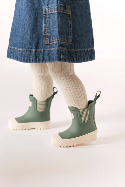 Made for puddle jumping and rainy day play! Our Voyageur Boot is crafted from waterproof natural rubber for a lightweight and flexible fit that keeps little feet dry. Designed with a wide toe box, slip-resistant sole and zero-drop heel, they support natural movement while helping toddlers and kids stay steady. Elastic side gores in our classic stripe and an easy pull-on loop make them a breeze to slip on and off—no grown-up help required. Pehr with our Jackets, Splash Pants or Suits for a full splash safe look!